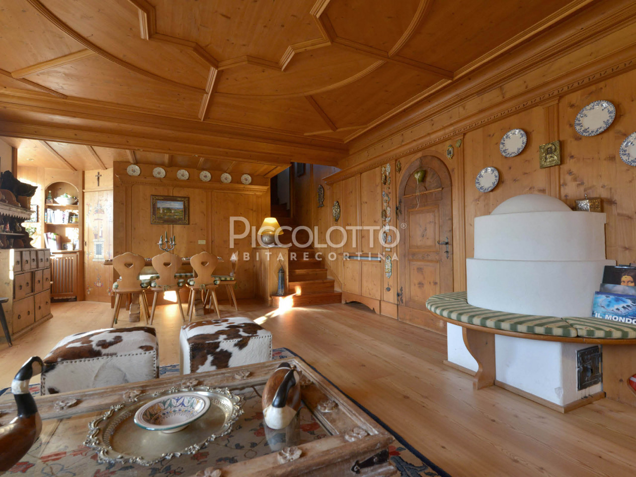Arioso appartamento con accesso indipendente ubicato in zona panoramica di Cortina d'Ampezzo, ottimamente orientato con terrazze su tre lati. Arredo caloroso con ambienti distribuiti in maniera funzionale.